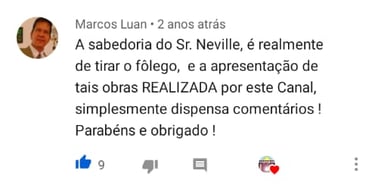 Meu canal no Youtube foi o primeiro em língua portuguesa a apresentar Neville ao grande público alcançando a impressionante marca de 70 milhões de visualizações só nos vídeos onde Neville era o tema central, assim impulsionando com esse sucesso outros canais a também divulgarem os ensinos do mesmo autor. Foram traduzidos e narrados para meu canal mais de 10 livros e outras dezenas de palestras do Neville me gabaritando assim como um especialista quando o assunto é Neville Goddard e seus ensinamentos.